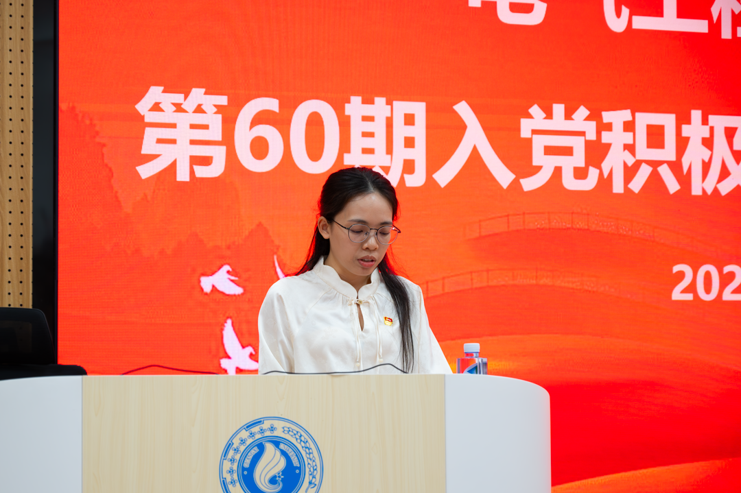 紧接着,培训班学员代表龚旭彪同学发言。他表达了对党组织的深厚向往以及对参与培训的热切期待,承诺将以饱满的热情投身于学习之中,严于律己,力求在思想和行动上均取得显著进步。